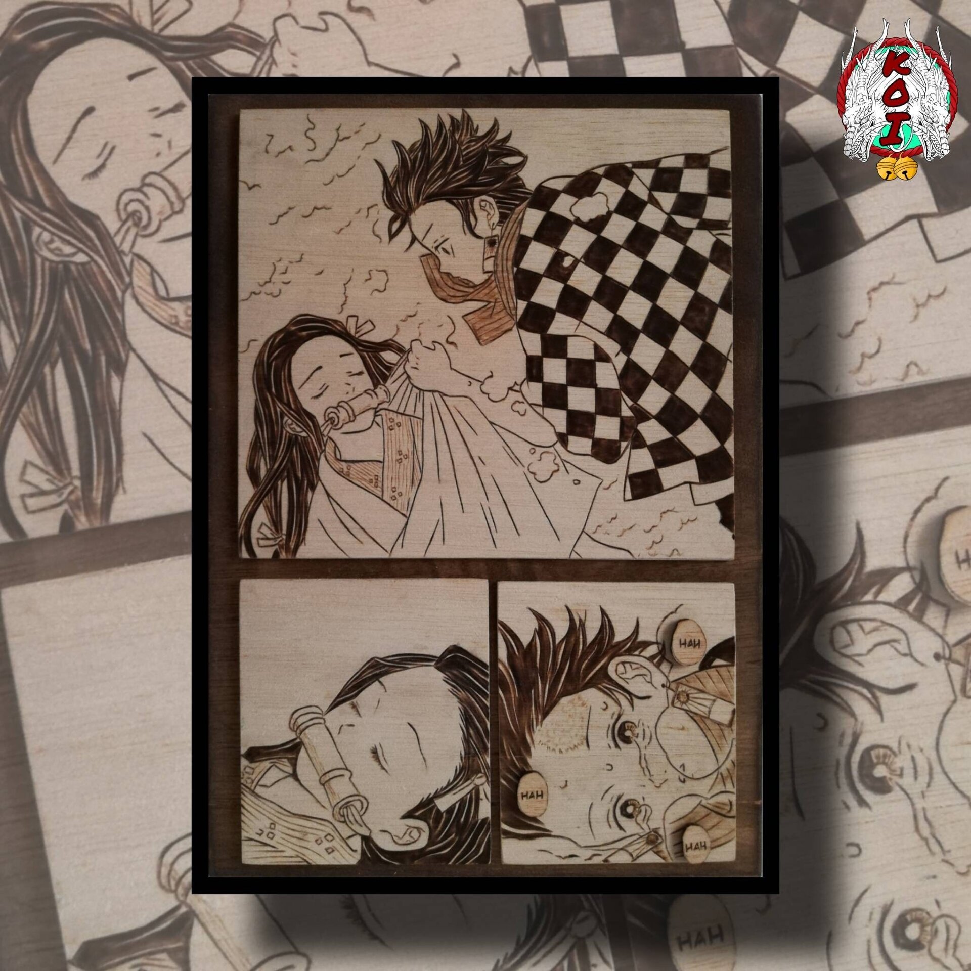 Cuadros priograbados a mano en una lámina A4 de madera, de distintos personajes anime y animación en general