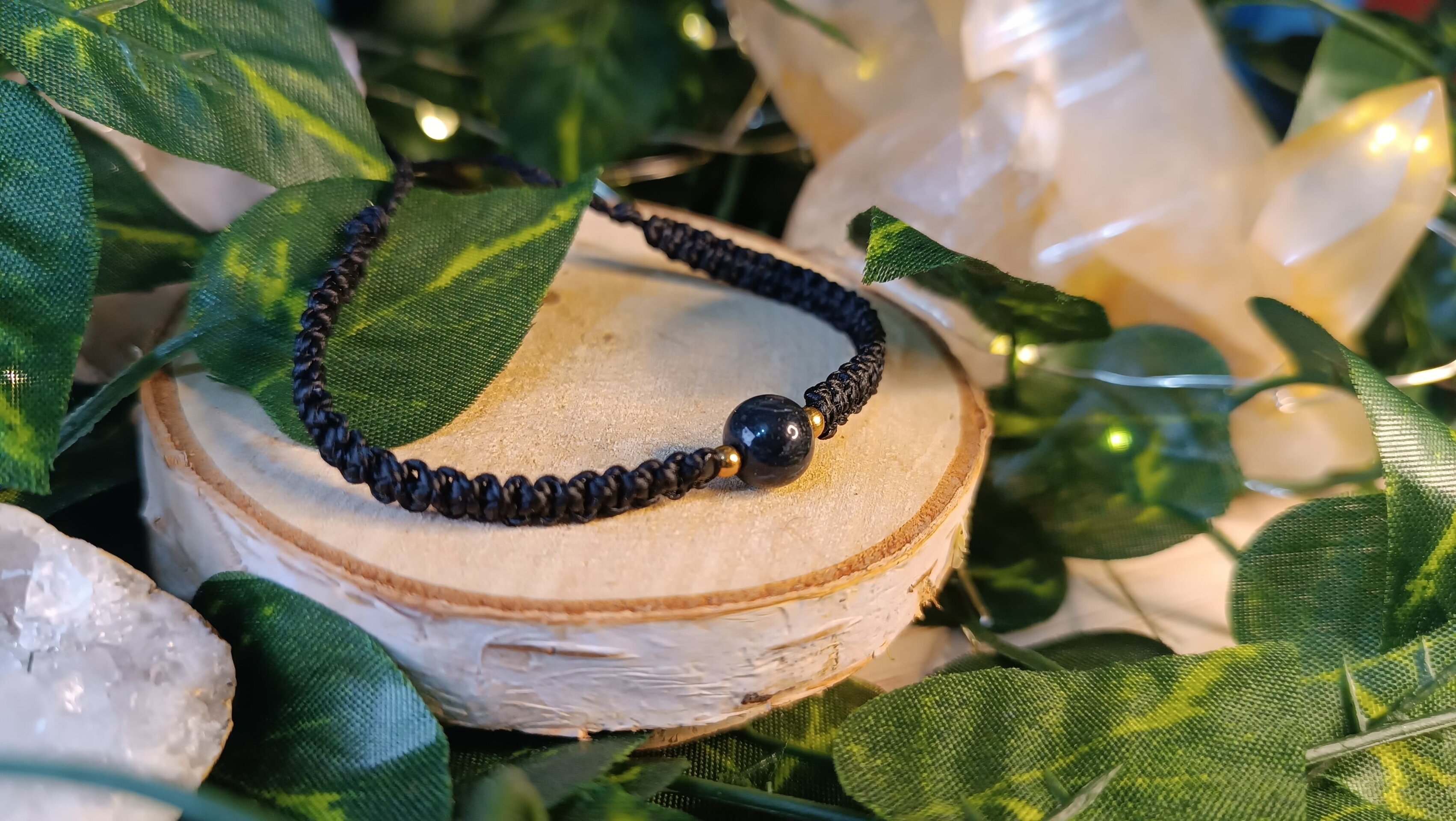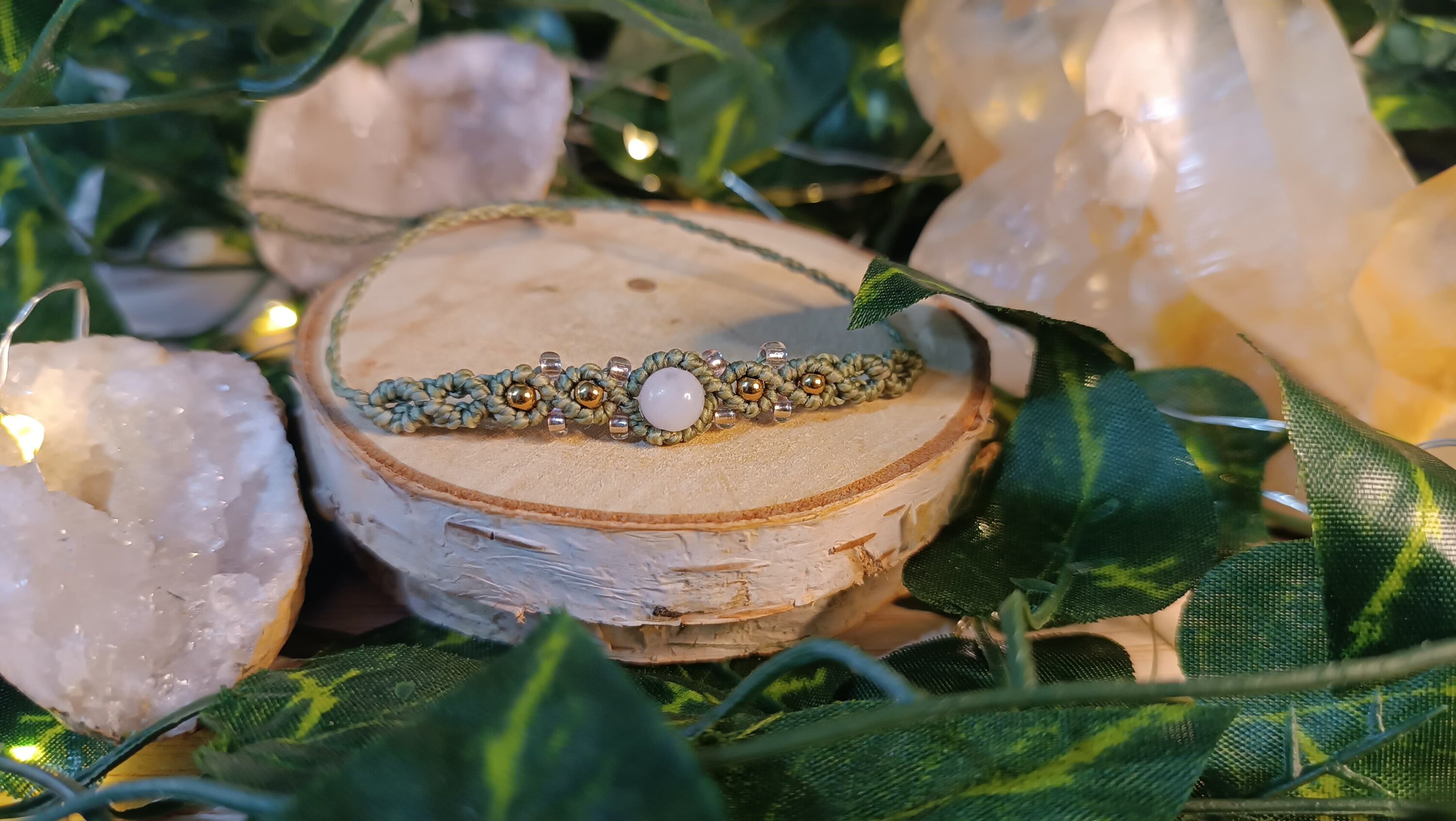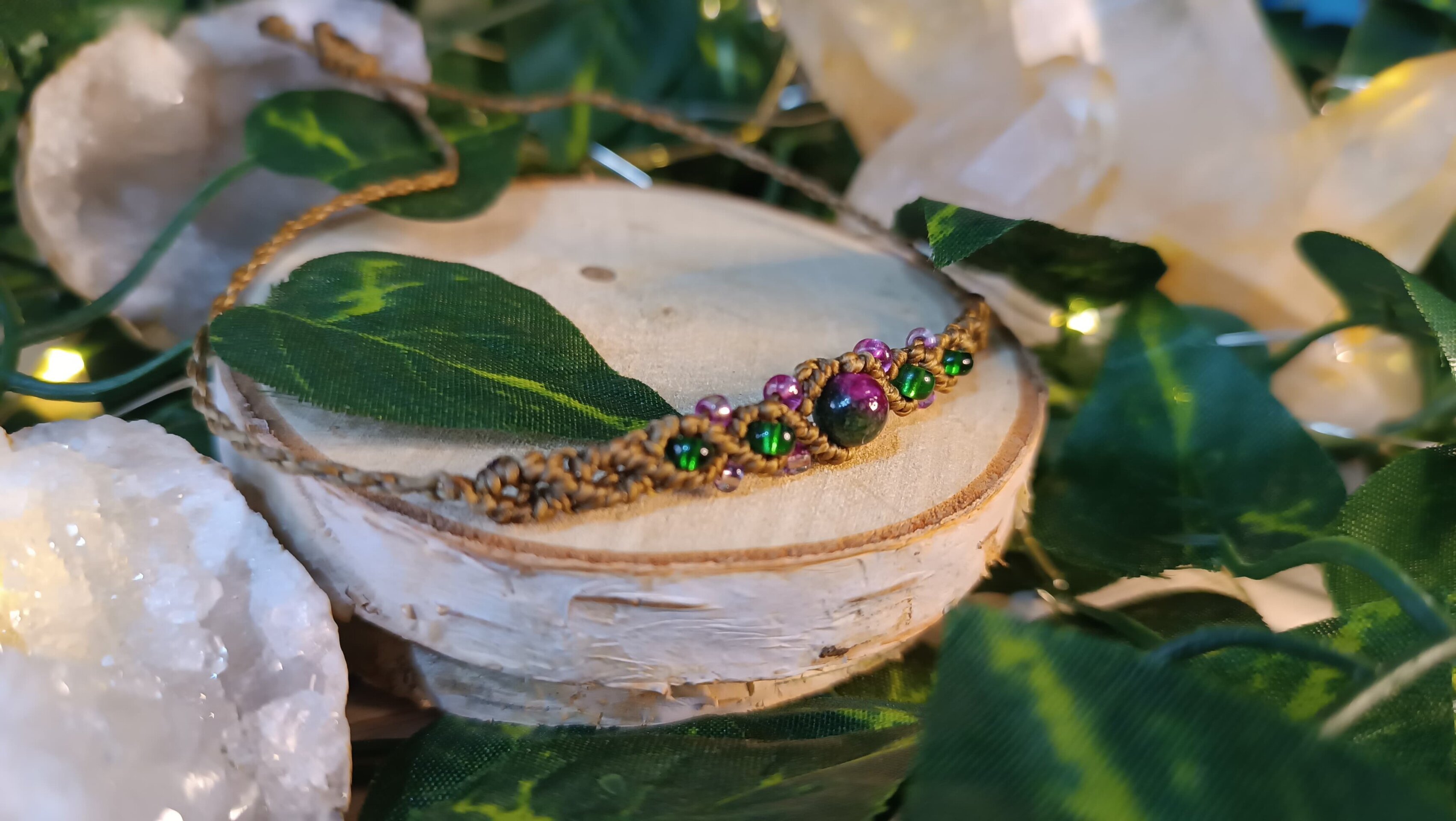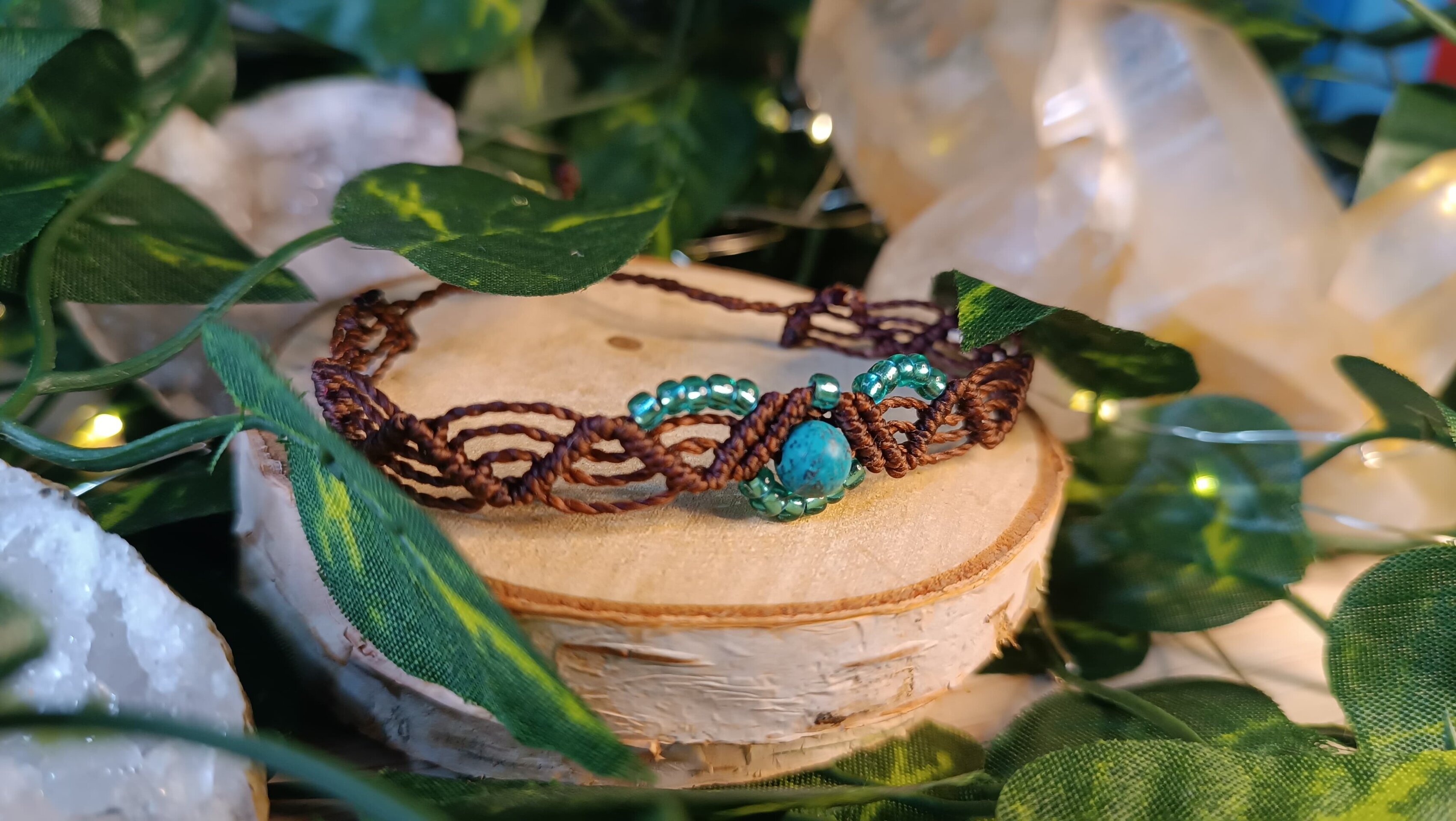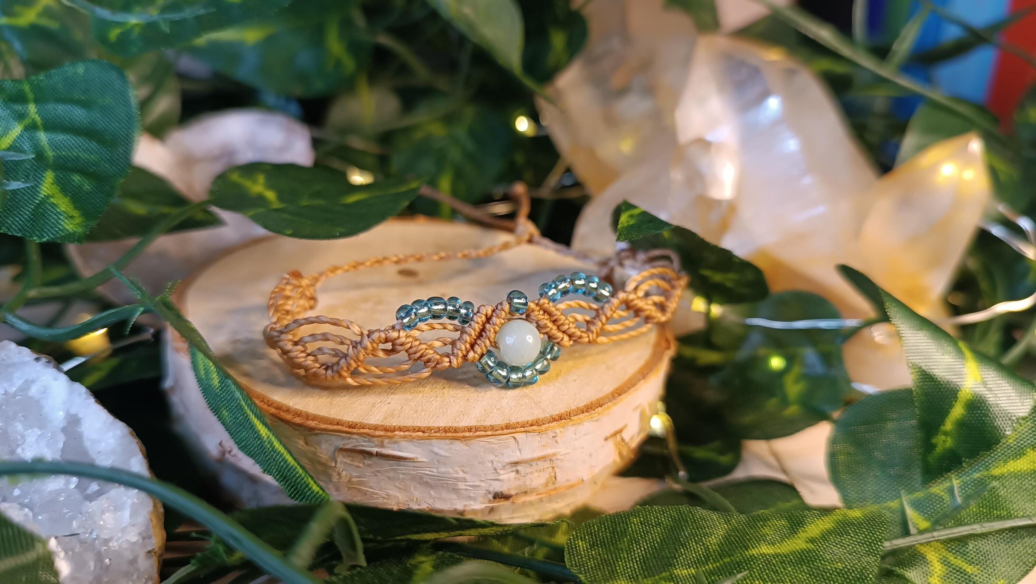 pulsera fantasía medieval con piedra natural tejidas a mano macrame
